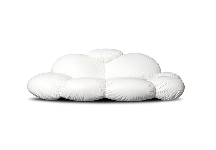 Soft clouds floating over the country and their gentle shapes became the main inspiration for the upholstered furniture CIRRUS. Virtually spontaneous composition of elements creates a perfect sofa for various seating and lounge positions. Curved shapes and sophisticated ergonomics define this unconventional contemporary piece and add to its functionality and comfort. For DIZAJNO, 2010.
